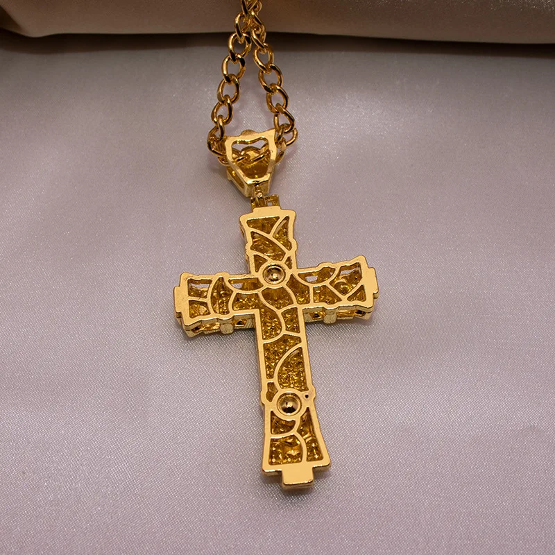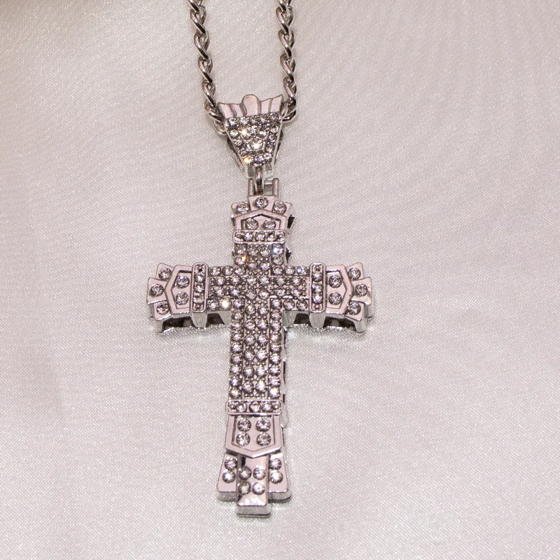 1 Simple Style MEN'S Rhinestone Christian Cross Rhinestone Pendant Necklace Personality Fashion Street Domineering Chain Jewelry