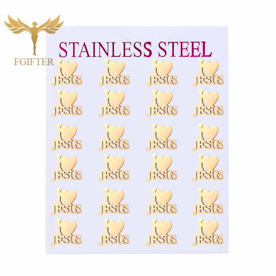 12 Pairs Pack Stainless Steel Earrings Set Cross Jesus Ear Studs Piercing Jewelry Wholesale Christian Catholicism Accessories