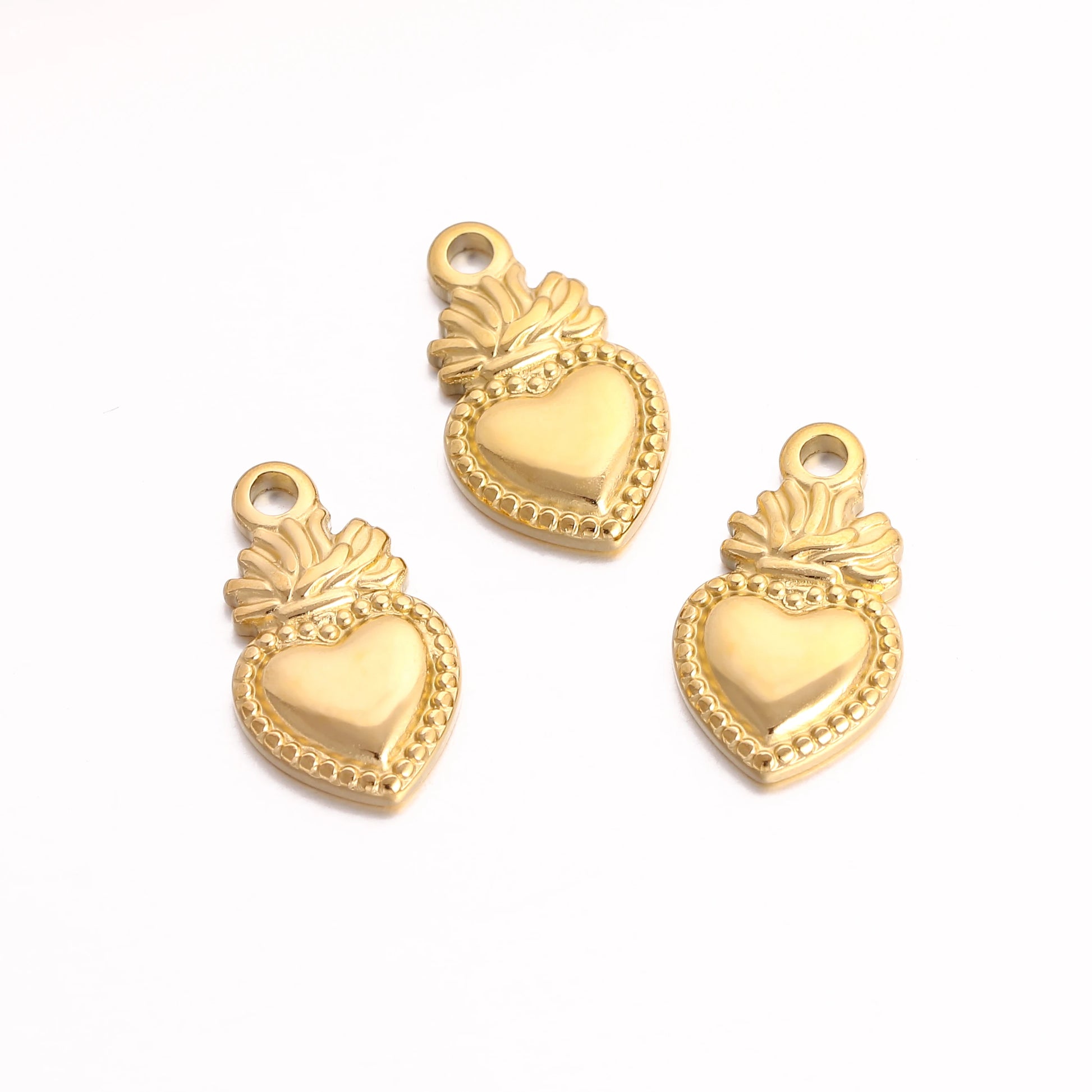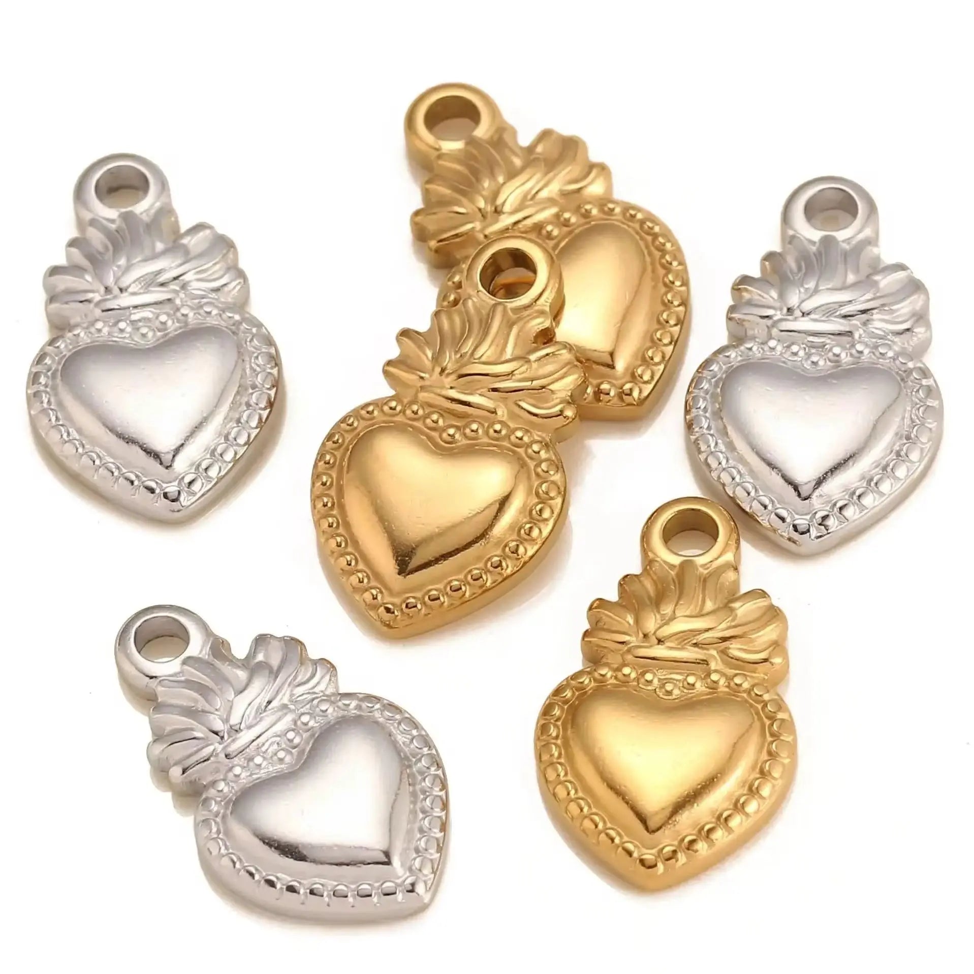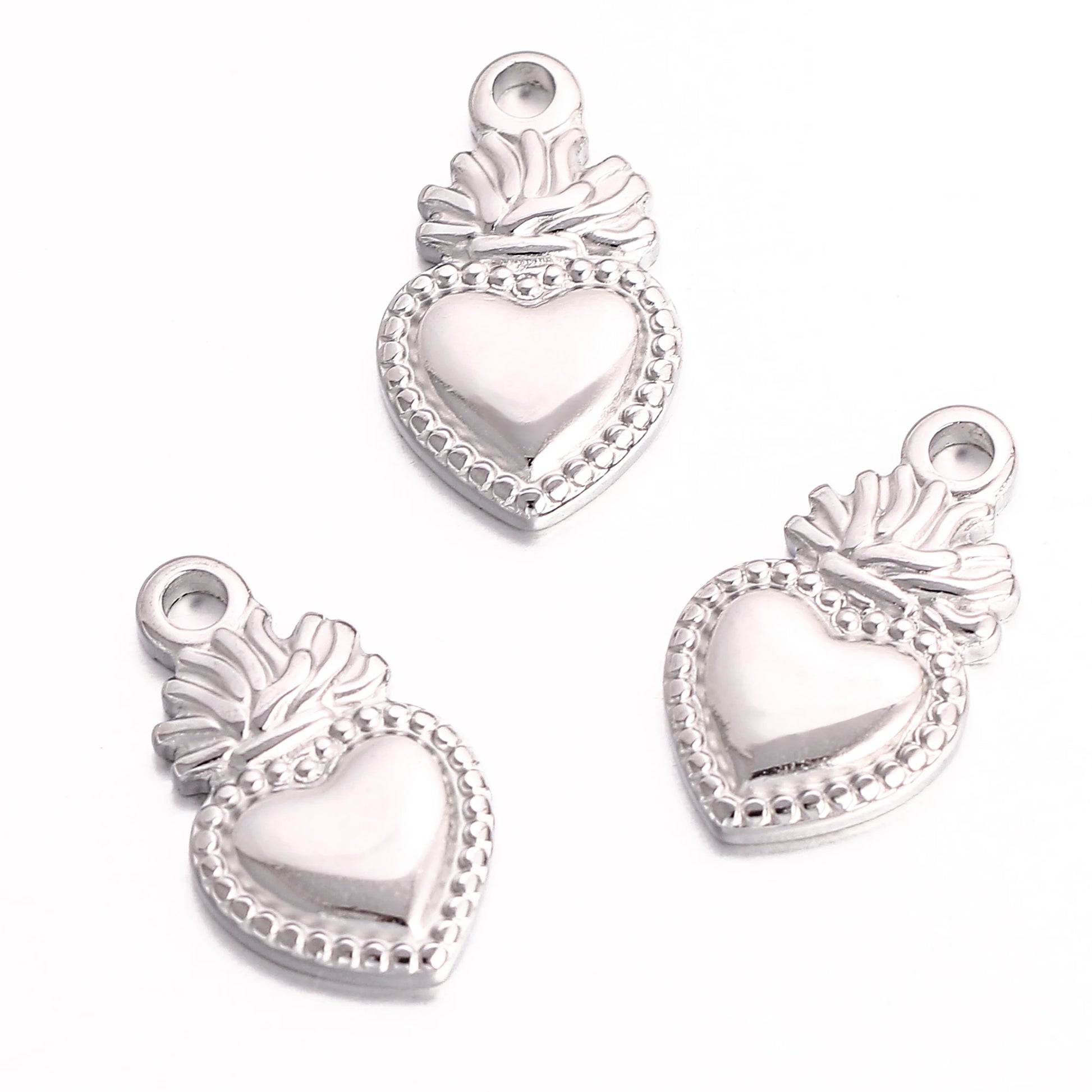 3Pc/Lot Christian Amulet Pendants Stainless Steel Sacred Heart Charms Flame Love Heart DIY Necklace Earring Jewelry Accessories