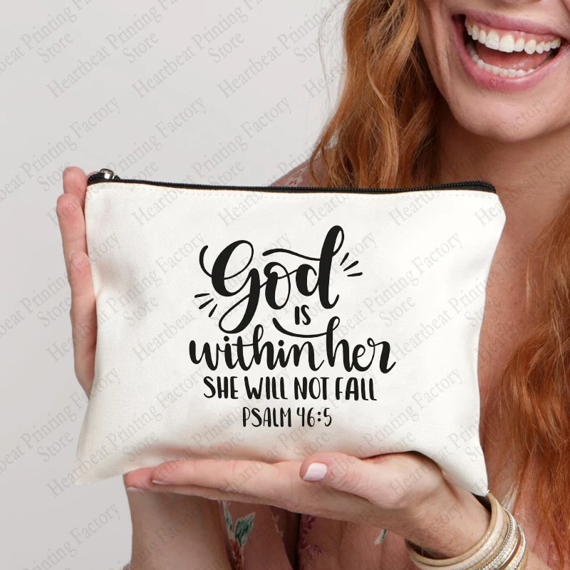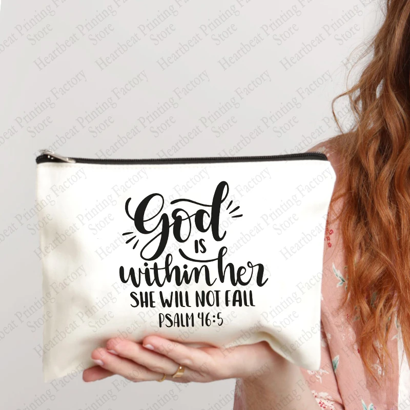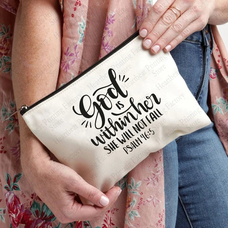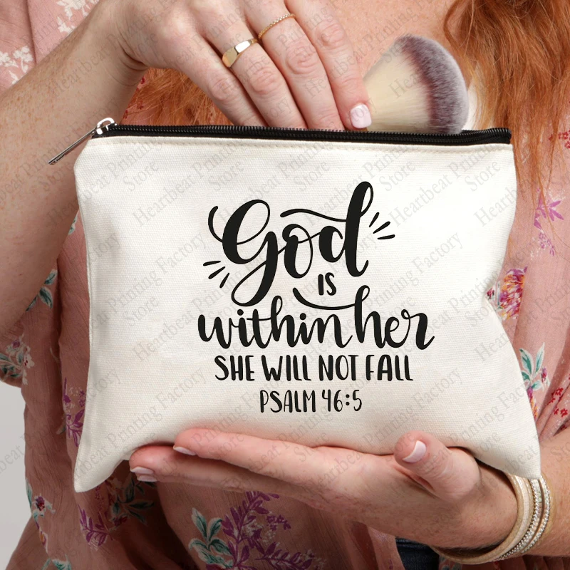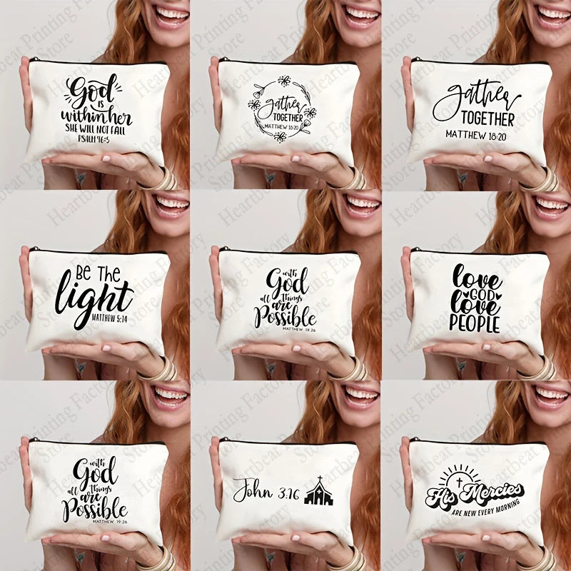 Be The Light Pattern Religious Gifts Church Canvas Make Up Bag God Illustration Cosmetics Pouch Christian Gifts for Women Wallet