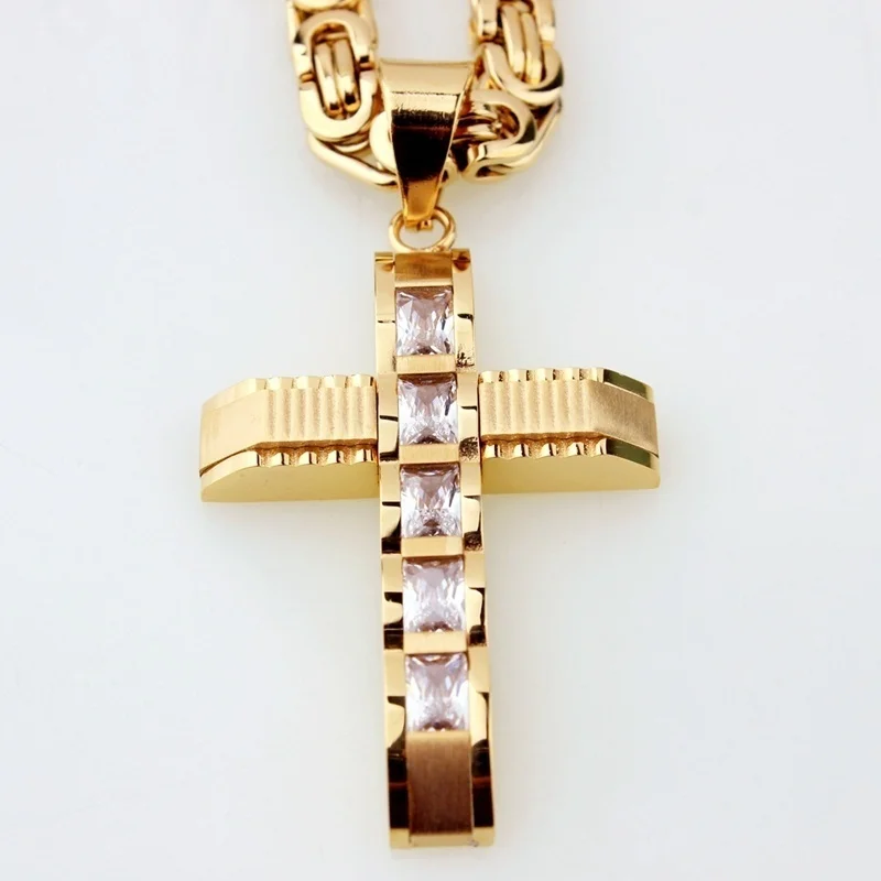 Christian Cross Pendant Women's New Fashion Metal Zircon Inlaid Accessories Religious Amulet Jewelry Without Chain