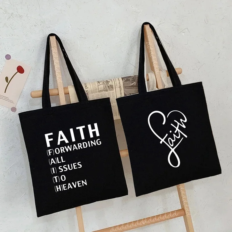 Faith Print Shopping Bag Tote Handbag Shopper Recycle Bag Reusable Tote Jesus Fashion Casual Handbag Purse Travel Beach Totes