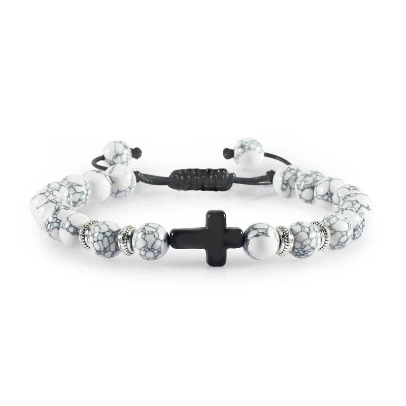 This handmade bracelet features natural stone and wooden beads braided together with a Christian Jesus cross, making it a meaningful accessory for men, women, and couples. Adjustable in length, it suits various wrist sizes and complements prayer, yoga, or everyday wear. Crafted with care, this trendy piece is perfect as a thoughtful gift for anniversaries, engagements, or special occasions. Available for retail, wholesale, and dropshipping, it can also be customized to your preferences. Add a touch of faith and style to your collection with this unique bracelet.
