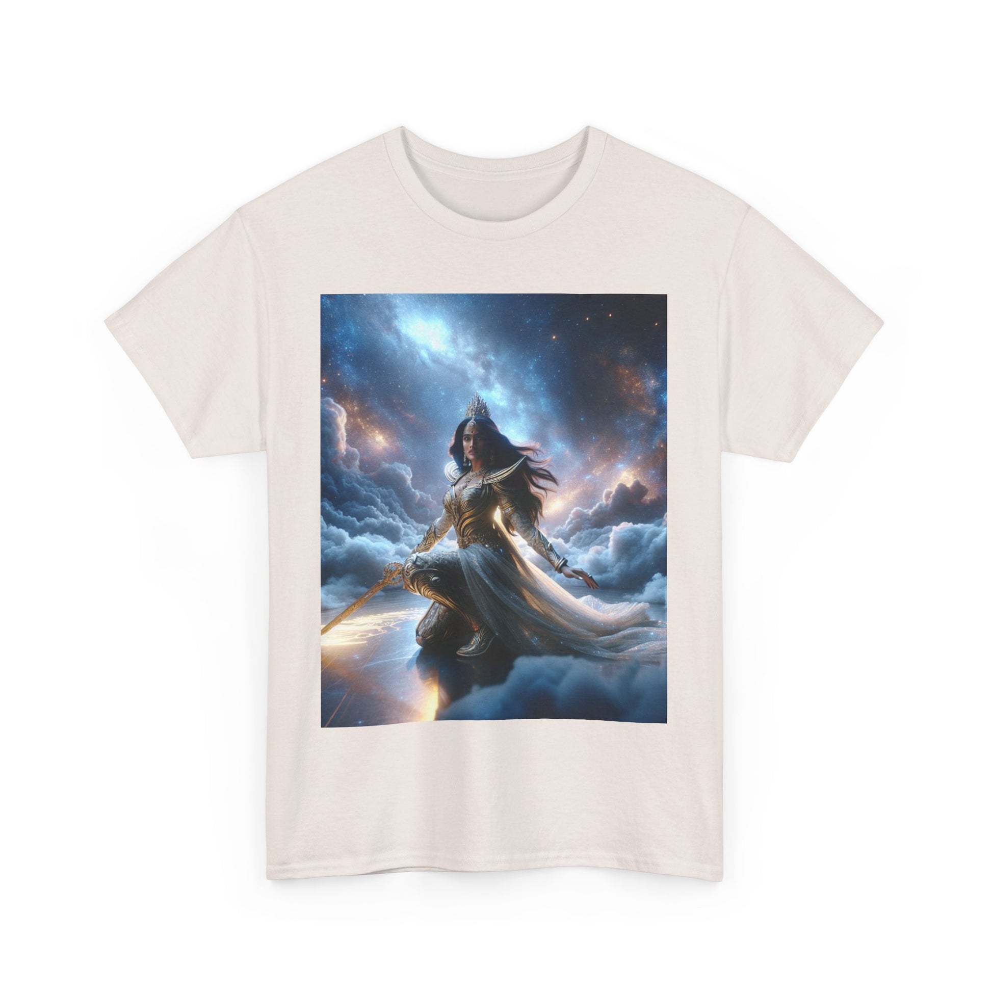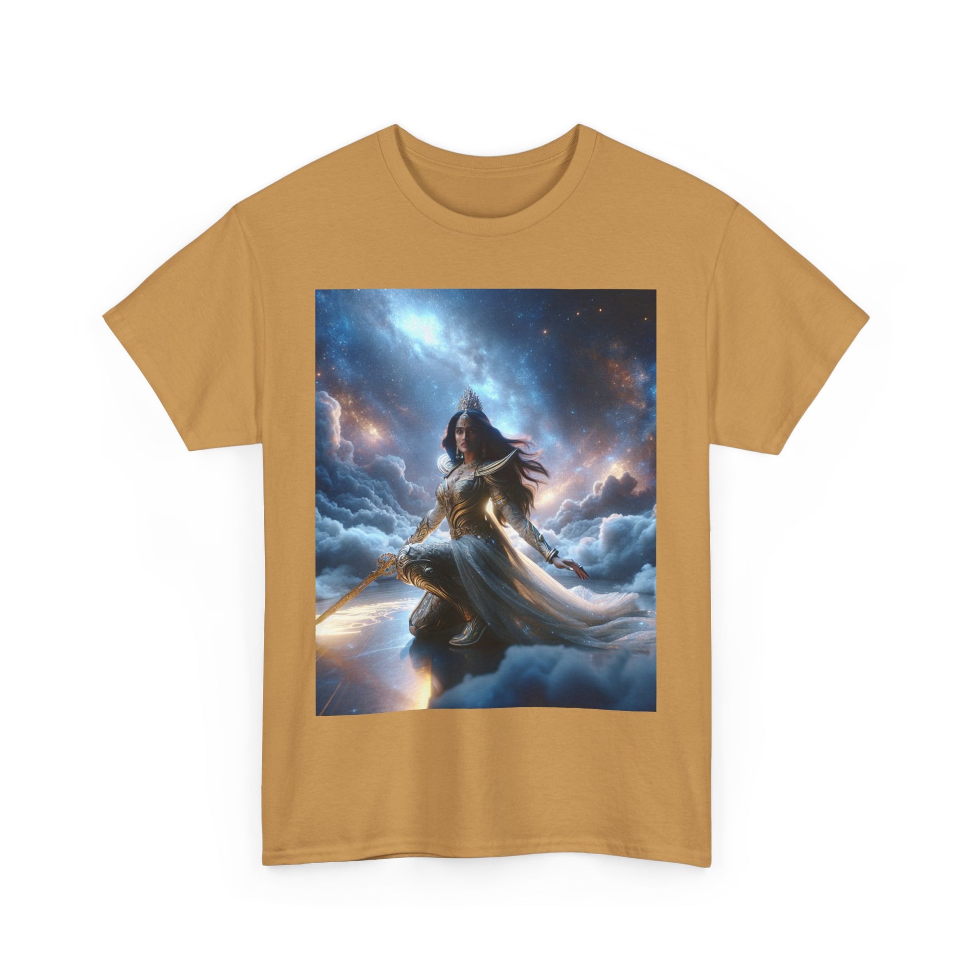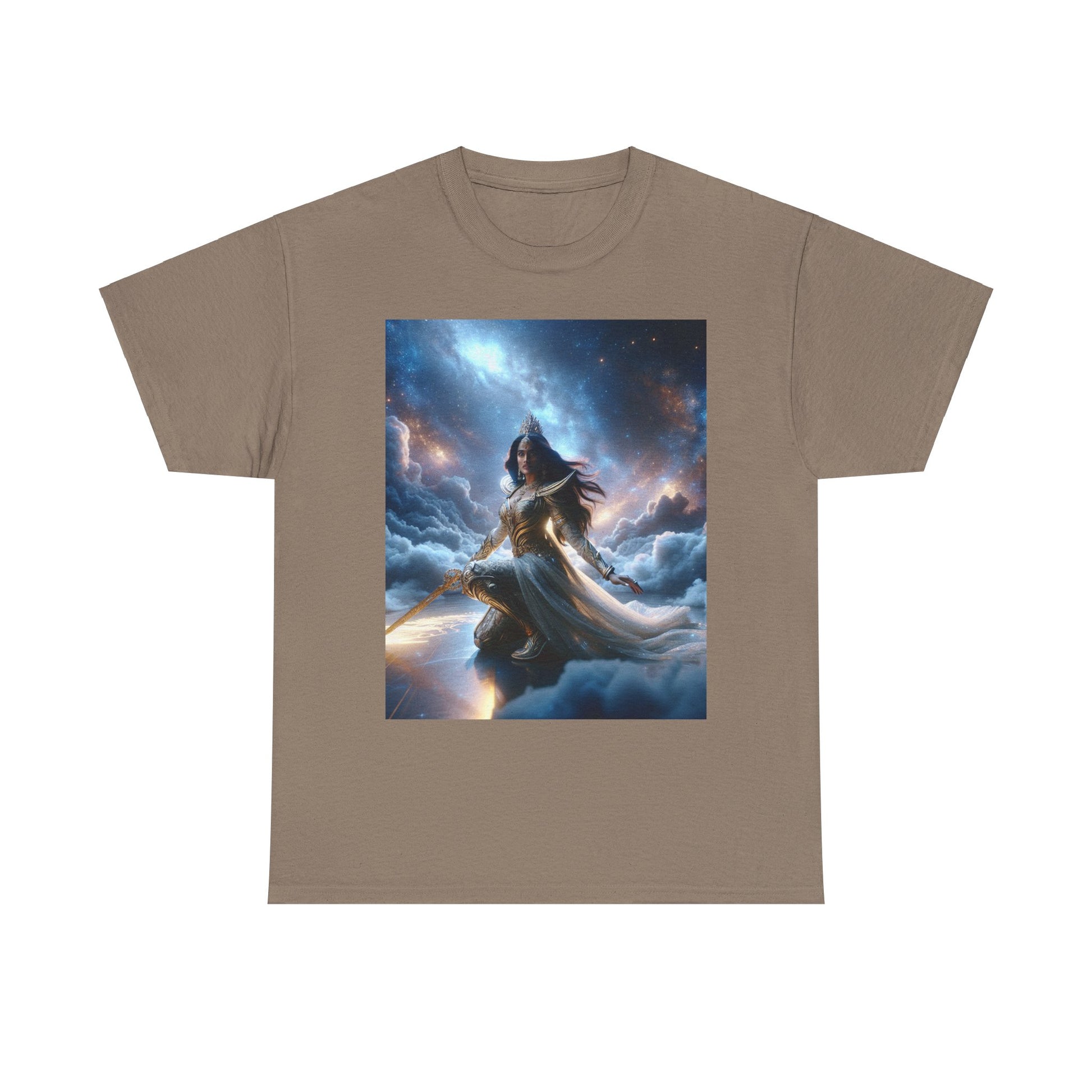 | This Warrior Princess Heavy Cotton Tee is available in sizes S, M, L, XL, 2XL, 3XL, 4XL, and 5XL, with a width ranging from 18.00 inches to 32.00 inches and a length ranging from 28.00 inches to 35.00 inches. The sleeve length, measured from the center back, varies from 15.10 inches to 25.00 inches. Please note that there may be a slight size tolerance.
