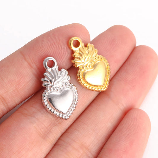 3Pc/Lot Christian Amulet Pendants Stainless Steel Sacred Heart Charms Flame Love Heart DIY Necklace Earring Jewelry Accessories