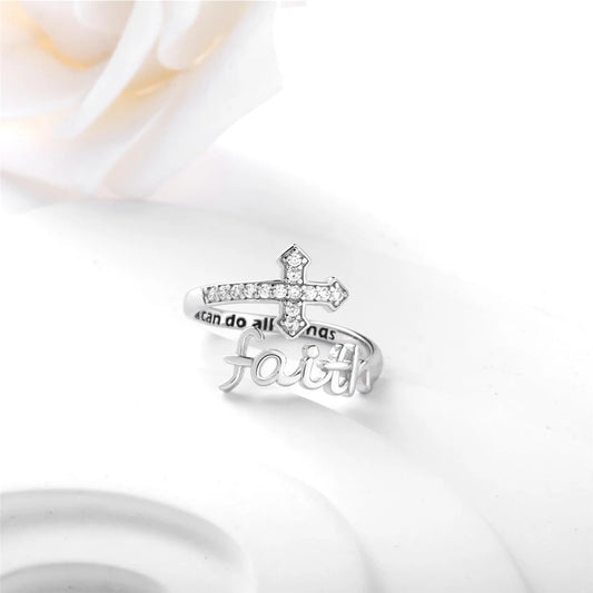 1Pc Exquisite Faith Cross Open Ring Fashion Christian Jewelry Daily Accessories Women's Prayer Blessing Perfect Gift